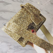 【南风】亮片单肩小方包女2017欧美时尚新款复古女包锁扣斜跨包潮
