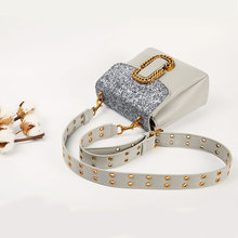 欧美女包包2017新款亮片宽肩带小包复古锁扣小方包单肩百搭斜挎包