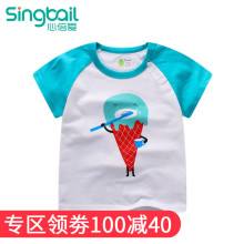 singbail小童短袖上衣0-1-2-3岁儿童半袖韩版 婴儿宝宝T恤夏肩扣