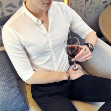 夏季白衬衫男士短袖修身韩版潮流休闲七分袖衬衣青年男装中袖衣服