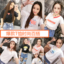 2017夏季新款 韩版时尚女装百搭学生显瘦短袖卡通T恤 潮上衣 Y113