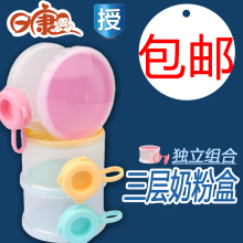 日康婴儿便携装奶粉盒子 三层大容量奶粉存储罐 旋转分装盒奶粉格