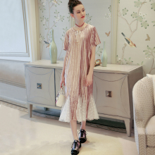 MIUCO欧洲站女装裙子新款波点网纱鱼尾裙气质条纹丝绒连衣裙2017