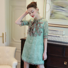 MIUCO欧洲站裙子名媛2017夏装新款刺绣荷叶领A字复古气质连衣裙仙
