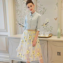 MIUCO名媛女装2017夏装新款翻领长款衬衫+重工刺绣网纱半裙套装潮