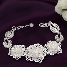 黄飞达送证书银手链S990纯银手链女多层时尚牡丹花女款饰品