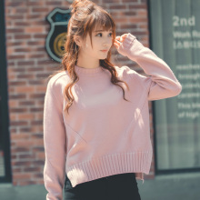 唐狮春秋套头高领短款韩版女毛衣白粉色宽松毛线衣学生针织打底衫