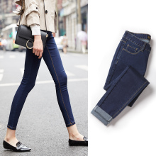 唐狮牛仔裤女长裤紧身小脚裤高腰铅笔裤弹力打底裤九分牛仔裤黑色