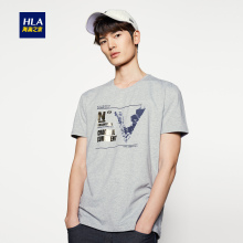 HLA/海澜之家浅灰个性印花t恤2017夏季新品圆领短袖t恤男
