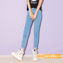 [B]美特斯邦威官方旗舰店牛仔裤女士春装新款高腰高弹长裤246673