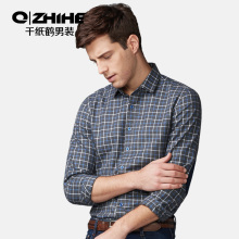 千纸鹤男装春季新款休闲磨毛棉色织格子拼接时尚长袖衬衫0317 A