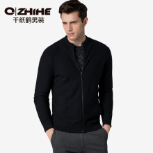 千纸鹤新品男士毛衣 春季青年时尚黑色线衫 针织衫开衫外套5021