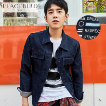 太平鸟男装 男深色牛仔蓝时尚前卫牛仔夹克外套潮BWBC71931