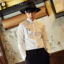 太平鸟男装 装白色个性字母印花休闲修身衬衫青年衬衣BWCA63238