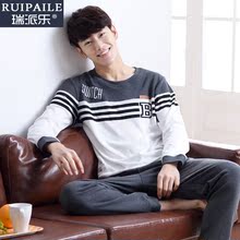 瑞派乐男士睡衣纯棉运动款全棉睡衣男长袖圆领春秋日韩套装家居服