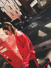 TKSTYLE定制 2017s/s 简约chic单品 领口破洞露肩直筒袖纯色卫衣