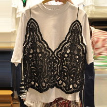 韩版2017春装新款女装气质短袖T恤蕾丝吊带背心上衣可爱两件套装