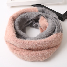 韩国秋冬季学生保暖韩版女士加厚毛线围脖套头百搭拼色毛毛围巾潮