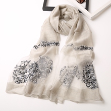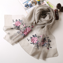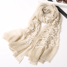 2017新款女春秋薄款高档绣花真丝羊毛丝巾文艺花朵桑蚕丝披肩礼物