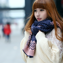 加厚 韩国秋冬季长款女生毛线围巾 可爱韩版双面圣诞雪花冬天保暖