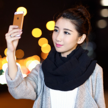 韩国冬天学生保暖女士毛线围脖套头韩版加厚纯色年轻人针织围巾男