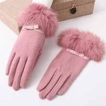 韩版秋冬季学生保暖布塔女士可爱淑女触摸屏羊毛手套分指加绒加厚