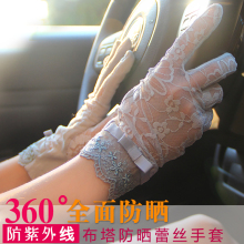 布塔 夏季开车女士防滑袖套 长款蕾丝防晒手套夏天防紫外线遮阳薄