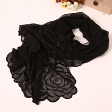 百搭黑色女性纱巾 纯色刺绣真丝长款丝巾 春秋冬季围巾桑蚕丝礼物