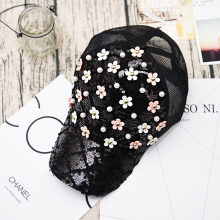 韩版女式手工亮片棒球帽春夏季透气网帽遮阳鸭舌帽珍珠花太阳帽