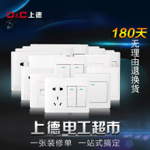 上德家用墙壁明装单1一开单控带5五孔开关插座电源86型面板