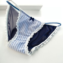 条纹简约韩版清新微透视网纱双系带低腰性感纯棉底裆 三角内裤女