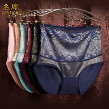 名库高腰蕾丝内裤女性感诱惑大码提臀收腹透明三角裤纯棉裆部