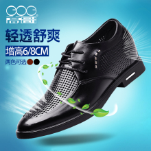 高哥增高鞋男式8cm透气内增高男鞋6cm休闲鞋男夏季皮鞋真皮工装鞋