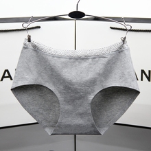 高品质女士纯色性感无痕三角纯棉内裤女中高腰全棉质面料蕾丝大码