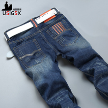 USIGSX春季潮款欧美风男士牛仔裤复古简约时尚印花修身青年长裤子