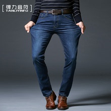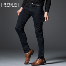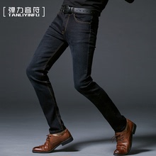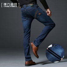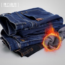 弹力音符加绒加厚牛仔裤男士秋冬款带绒保暖男裤子男装长裤加大码