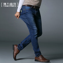 高弹力牛仔裤男夏季薄款小脚男裤子有弹性修身直筒休闲长裤加大码