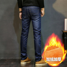 秋冬款冬季男士牛仔裤修身直筒青少年弹力小脚加绒加厚男装长裤子