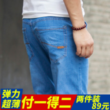 弹力男士牛仔裤青年夏季超薄款加肥加大码修身直筒宽松长裤子男
