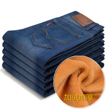 任先生秋冬款男士牛仔裤加绒加厚牛仔裤男直筒修身青年中腰长裤子