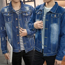 秋季破洞牛仔外套男士韩版修身潮流牛仔夹克学生休闲外穿长袖衣服