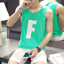 背心男修身型印花无袖t恤青年韩版潮学生情侣夏季紧身运动打底衫