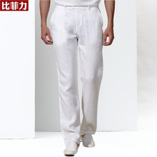 比菲力男士亚麻裤中国风男装麻料男裤夏季薄款休闲裤宽松直筒裤子