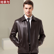 比菲力男士真皮皮衣大整皮男式绵羊皮真皮夹克海宁翻领中年外套男