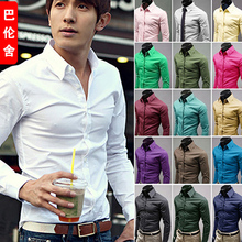 男装春季韩版纯色白衬衣商务休闲寸衫青年修身型潮流男士长袖衬衫