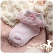 粉红色天使小公主可爱婴儿童宝宝10-21CM 粉色蕾丝袜子女童袜