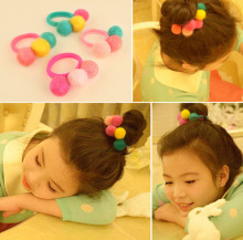 儿童发饰品 韩国三多彩毛毡球弹力发圈头花 女童孩头饰皮筋头发绳