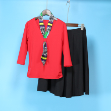 真XL 2017春装新品 圆领纯色T恤+黑色褶皱宽松短裙半身裙8002剪标