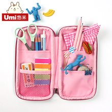 笔袋UMI简约女生文具男学生多功能多层帆布包邮文具盒大容量笔袋