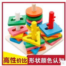 木制四套柱男宝宝女孩六一礼物婴儿童益智力积木玩具1-2-3-6周岁